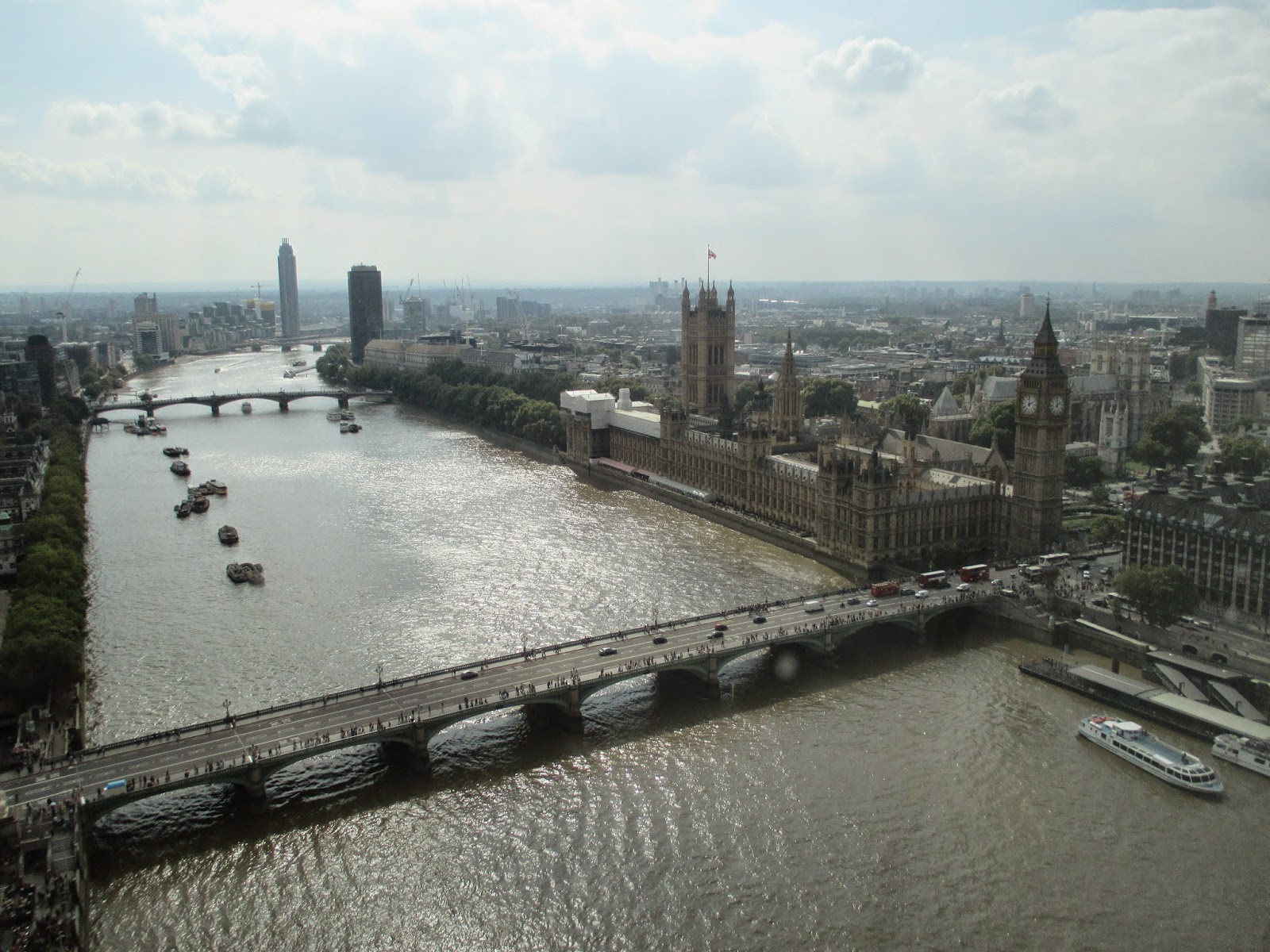 Houses of Parliament, Big Ben e Westminster Bridge - vista do topo do London Eye